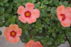 Sedan Purslane Peach is a heat-lover and sun-worshipper. It is also drought resistant which makes it a great choice for late Spring, Summer and Fall weather. Sedan Purslane Peach produces pretty pastel peach blooms amidst its foliage that grows and trails gracefully over the edges of borders, baskets, containers and rock ledges. Its rounded, succulent green leaves are a beautiful backdrop for its 1-1 1/2” blooms that bloom throughout the Spring, Summer and Fall. Purslane is at its peak when the sun is full and hot, then its blooms are opened up wide for the best display of color.