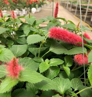 As an easy care plant, Acalypha pendula (also known as the Chenille Firetail plant), looks best in hanging baskets, containers, and window boxes. It produces masses of fluffy, red spikes during the season. This heat tolerant plant is trailing and is a great 'spiller' item for your garden!