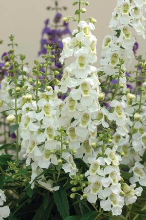 Angelonia Serena White produces white blooms amidst the green upright foliage. Angelonia appears to be a delicate plant with dainty flowers, but it is tough! It has dense stems and grows in a compact upright habit. Angelonia produces many blossoms on its tall stems and is tough enough to handle the summer heat and near drought conditions. Tough never looked so sweet! Angelonia grows a multitude of delicate flowers maturing to 16-20” tall. It spreads to about 14” wide. Angelonia works very well along walkways, edges of beds and in any Spring or Summer container. This sweet annual grows quickly and blooms continuously, so it’s always a favorite with landscapers!