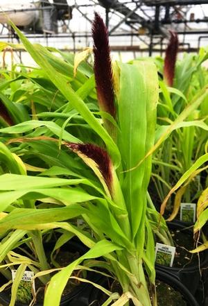 Pennisetum Glaucom is commonly referred to as Millet-Jester and Millet-Jade Princess. Jade Princess grows thick, dense and bushy with leaves maturing in beautiful chartreuse shades. Jade Princess produces seedheads of bronze, approximately 8-10” tall, and matures to height of 24-30” tall and 18-24” wide that makes for an impressive backdrop. Millet grasses are beautiful as a backdrop for smaller bedding plants in a sunny garden spot. They prefer full sun and tolerate drought conditions. They prefer sandy to normal soil, well drained. Perfect in large areas!