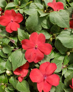 The Xtreme Impatiens Red produce a green foliage and covers itself with bright blooms. The compact, extremely uniform growth habit and vivid blooms makes this a fantastic choice for landscape, baskets and containers! The blooms are approximately 2.5" wide amongst the foliage on short thick stems that bloom right up until the frost. These Xtreme Impatiens are desired most for their wide selection of bright, ever-blooming colors, improved heat tolerance and uniform growth habit for landscape projects. This is a great annual for Spring, Mother's Day, Summer, and Fall. The Xtreme Impatiens prefer partial sun/shade. It is similar to the Dazzler Impatiens, but matures to about 9-11" tall and about 8-10" wide and prefers fertile, moist soil. Trimming back dead blossoms encourages new blooms. Please remember, these lovelies may need a little extra TLC and more consistent watering, especially if in containers!