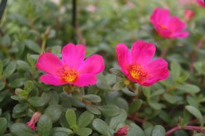 Sedan Purslane Cherry produces lovely hot pink blooms amidst its foliage that grows and trails gracefully over the edges of borders, baskets, containers and rock ledges. Sedan Purslane Cherry is a heat-lover and sun-worshipper. It is also drought resistant which makes it a great choice for late Spring, Summer and Fall weather. Its rounded, succulent green leaves are a beautiful backdrop for its 1-1 1/2” blooms that bloom throughout the Spring, Summer and Fall. Purslane is at its peak when the sun is full and hot, then its blooms are opened up wide for the best display of color.