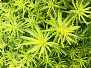 The Angelina Sedum is great for ground cover. Its mat forming habit, yellow leaves and yellow blooms make it a striking addition to any garden. In certian climates, it leaves will turn more orange or red in fall as the temperature gets cooler.