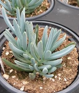 This succulent produces an upward blue-gray long tubular shaped leave. If conditions are correct it will bloom in mid summer a small white flower.