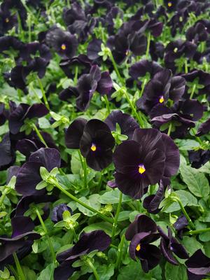 Penny Black producs beautiful dark colored blooms. Violas have a distinct pattern in the way they bloom. They have a semi-trailing habit and are very versatile and adaptive, making them a great addition to a hanging basket or patio pot. They will continue to flower through the winter in mild climates and will pick up where they left off once the snow melts off the plants. They flower earlier and longer than other fall plants, even in low light.